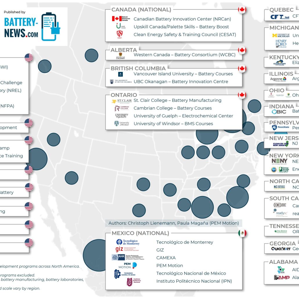 Aktuelle Karte zu Batterie-Training-Anbietern in Nordamerika (hohe Auflösung)