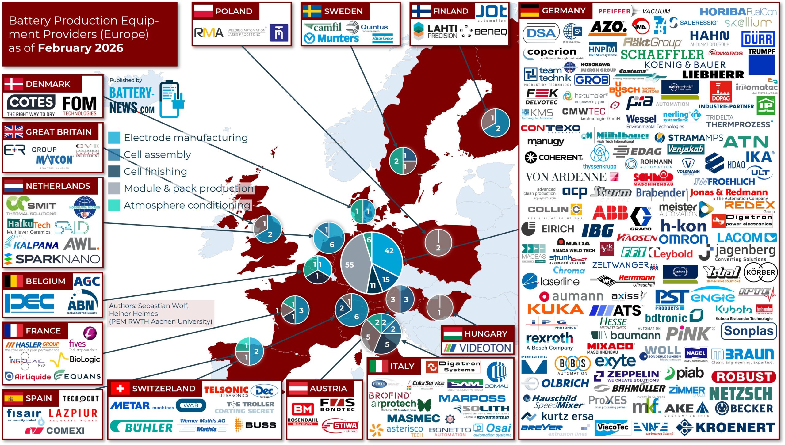 Battery-News provides an overview of machine and plant manufacturers for the production of lithium-ion batteries in Europe. The underlying data come from official announcements by the respective players and reliable sources from the battery production environment.