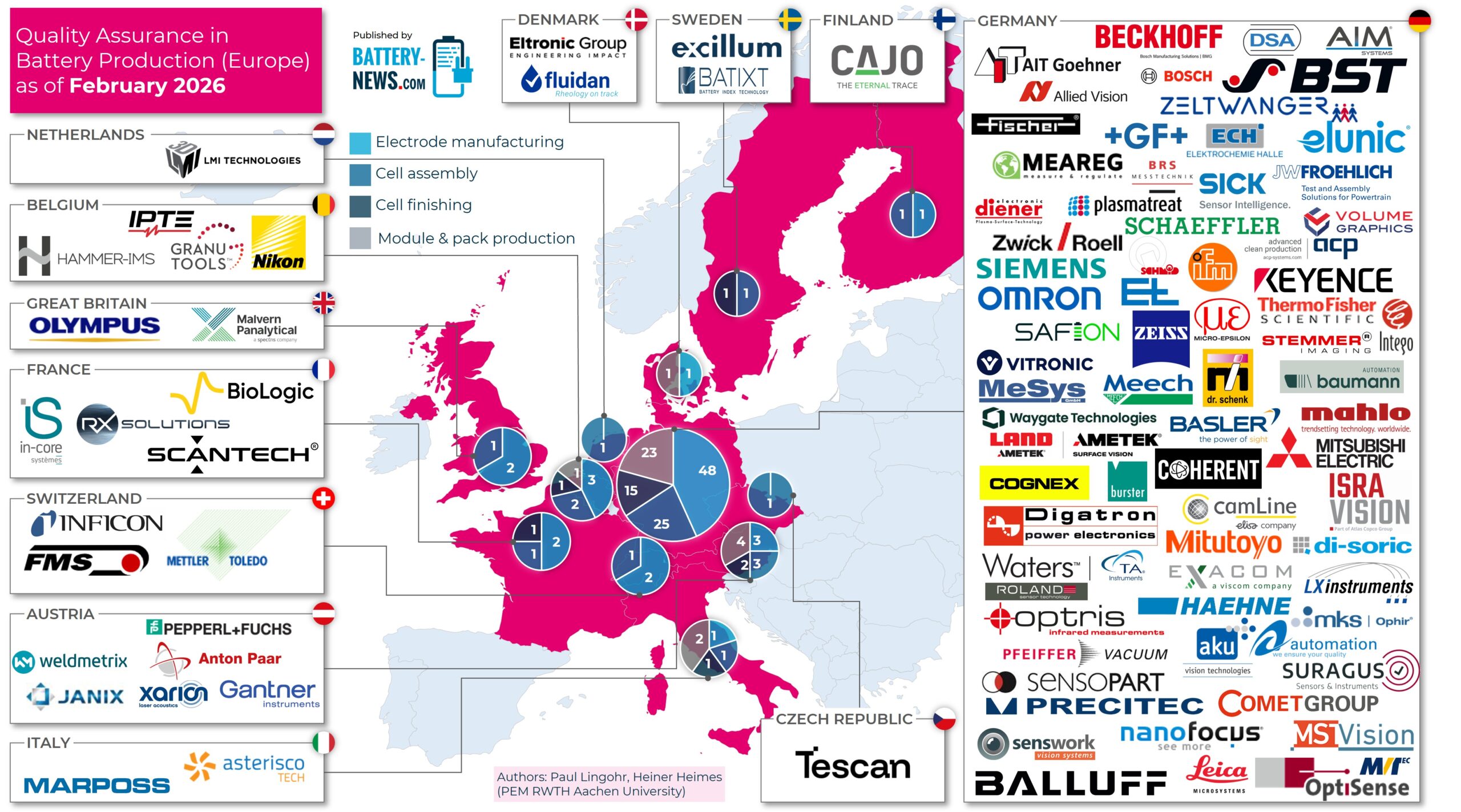 Die Battery-News präsentieren eine Übersicht zu Unternehmen im Bereich der Qualitätssicherung von Lithium-Ionen-Batterien in Europa. Die zugrunde liegenden Daten stammen aus offiziellen Mitteilungen der jeweiligen Akteure und verlässlichen Quellen aus dem Umfeld der Batterieproduktion.